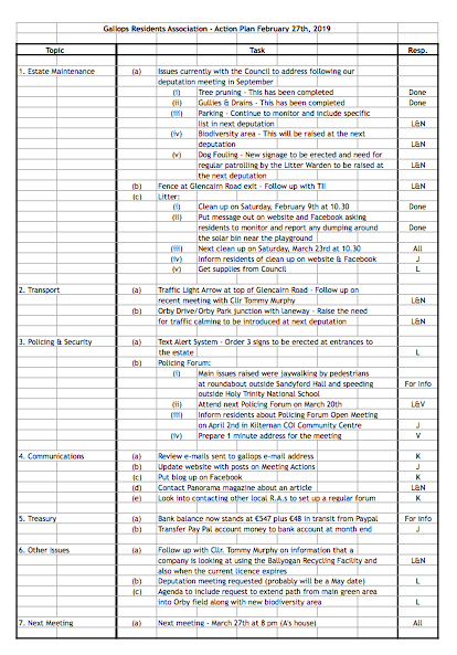 First of all, thank you very much everybody who has made an online donation to the Residents Association. If you have not made a donation yet and could spare €5 or €10 once a year or even every second year, then that would be very much appreciated.