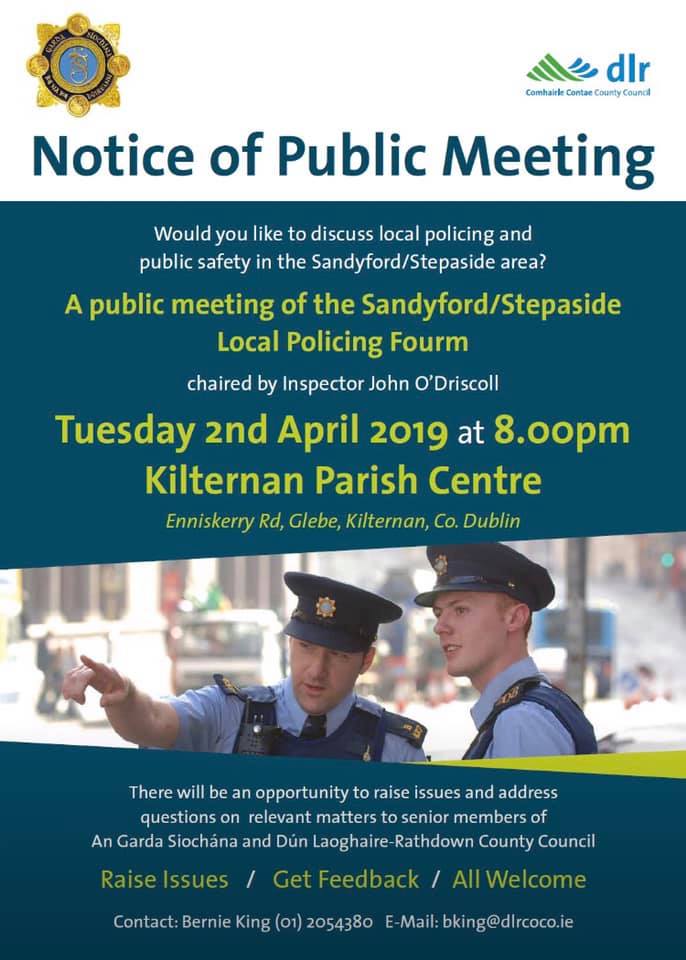 You can find more information about ‘Joint Policing Committee / Local Policing Forums’ at https://www.dlrcoco.ie/en/community/joint-policing-committee-local-policing-forums