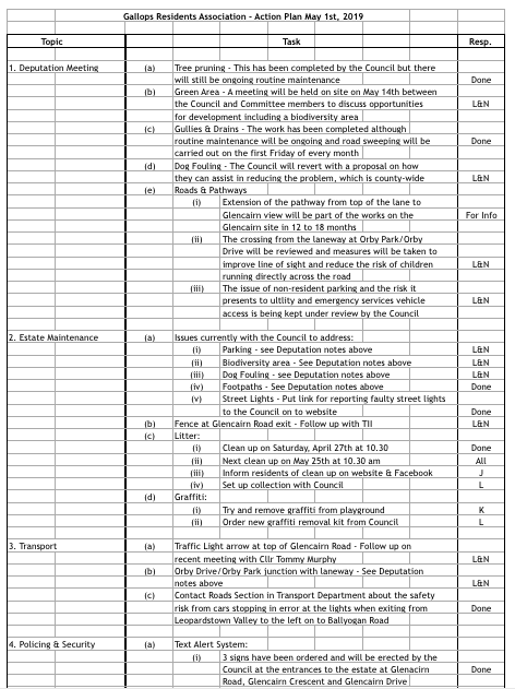 And now back to our last meeting, below you can see the full list of actions, which were discussed at our meeting on May 1st. To enlarge or download the action plan as pdf, please click the image below.