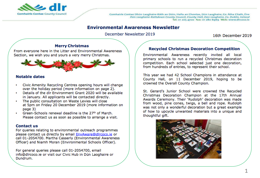 Find below Christmas tree recycling information and read the Newsletter with lots of tips & hints for a sustainable Christmas. To enlarge the leaflets and to download please click on each poster.