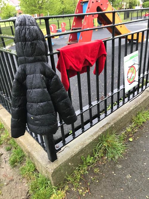 Weāve reported the damage to the surface of the playground CRM 223530 refers. We also found a black jacket aged 6-7 from Dunnes and the red jumper 7-8 from Next and thereās also a light blue beanie hat there as well, see pictures below.