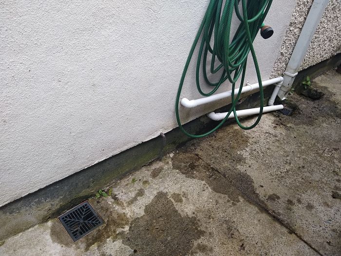 After writing a post about the ‘Dublin Urban Rivers LIFE project inspecting properties in the Gallops‘ I had a look at the plumbing outside of our extension and found that the pipes from the dishwasher and the washing machine were joining the downpipe from the gutters.
