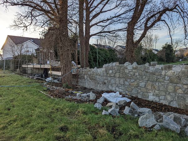 Park Developments have also finished the planting of trees behind the boundary wall between Orby Avenue and the M50 following agreement with DLRCC Parks Department. The existing scrub and bush were previously removed to allow for essential foul sewer connection works. They have planted eight new trees in total, lots of small brambles, and a few conifer trees a few meters away from the boundary wall towards the M50. These trees and bushes will be left to grow wild there and should provide a noise and pollution barrier for residents. They will also finish building up the stone wall between the development and the M50 as soon as the weather allows, so there won’t be any more access, temporary fencing is currently in place.
