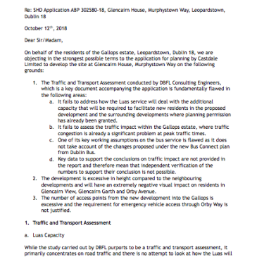 Below you can find our appeal to ABP on Glencairn House Development by the Gallops Residents Association. To enlarge or download the appeal as pdf, please click the image below. If you’d like to send in your appeal and haven’t done so yet, please remember that the deadline is this Thursday October 18th.